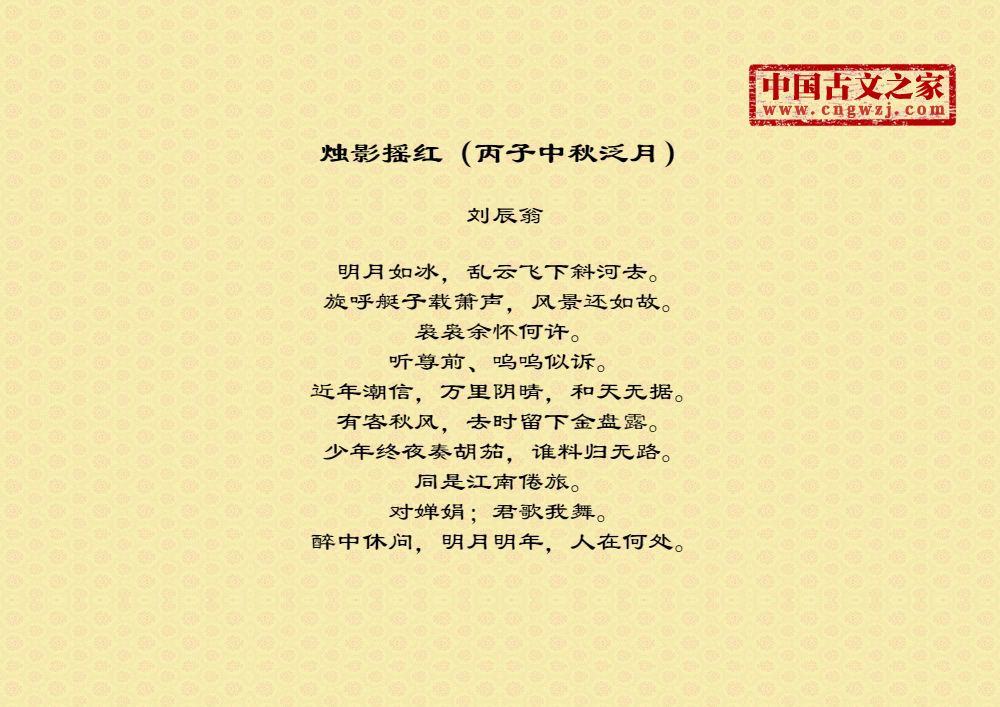 《烛影摇红(丙子中秋泛月)》的原文打印版(刘辰翁)