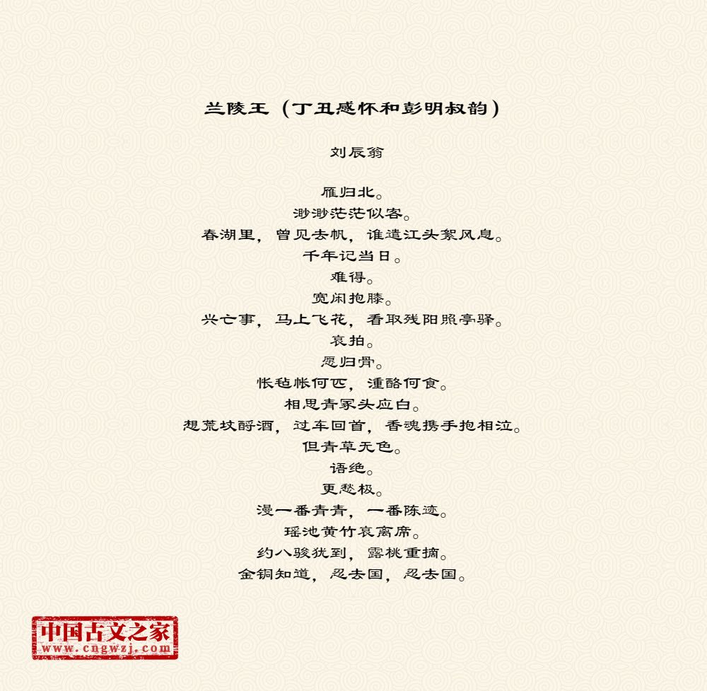 《兰陵王(丁丑感怀和彭明叔韵)》的原文打印版(刘辰翁)