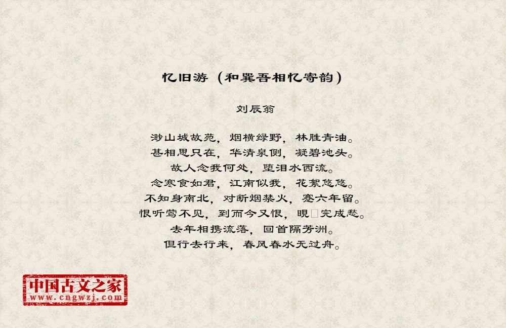 《忆旧游(和巽吾相忆寄韵)》的原文打印版(刘辰翁)