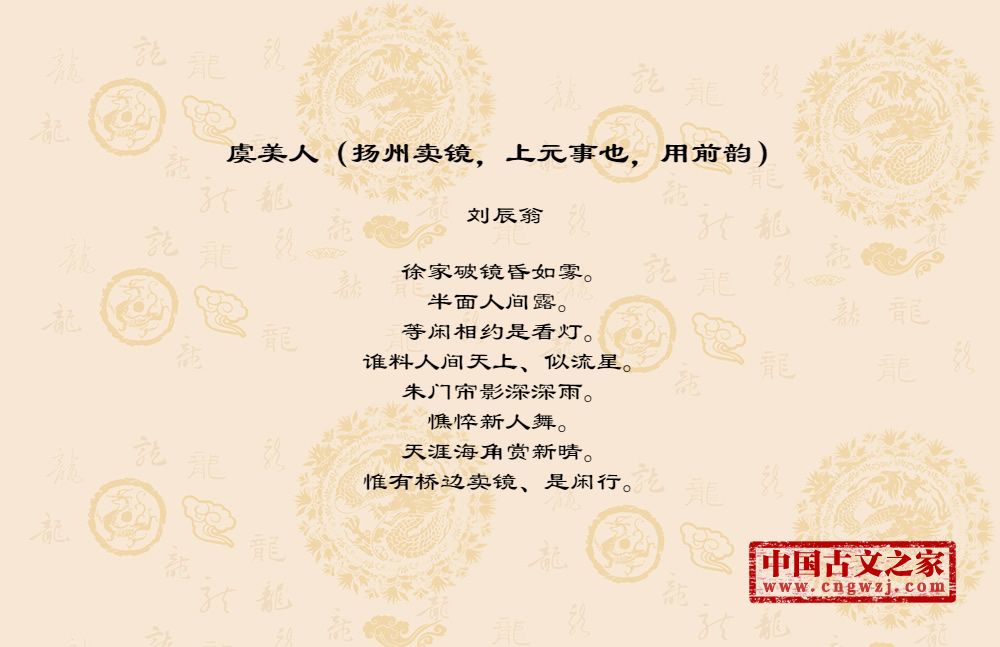 《虞美人(扬州卖镜,上元事也,用前韵)》的原文打印版(刘辰翁)