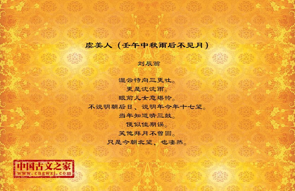 《虞美人(壬午中秋雨后不见月)》的原文打印版(刘辰翁)