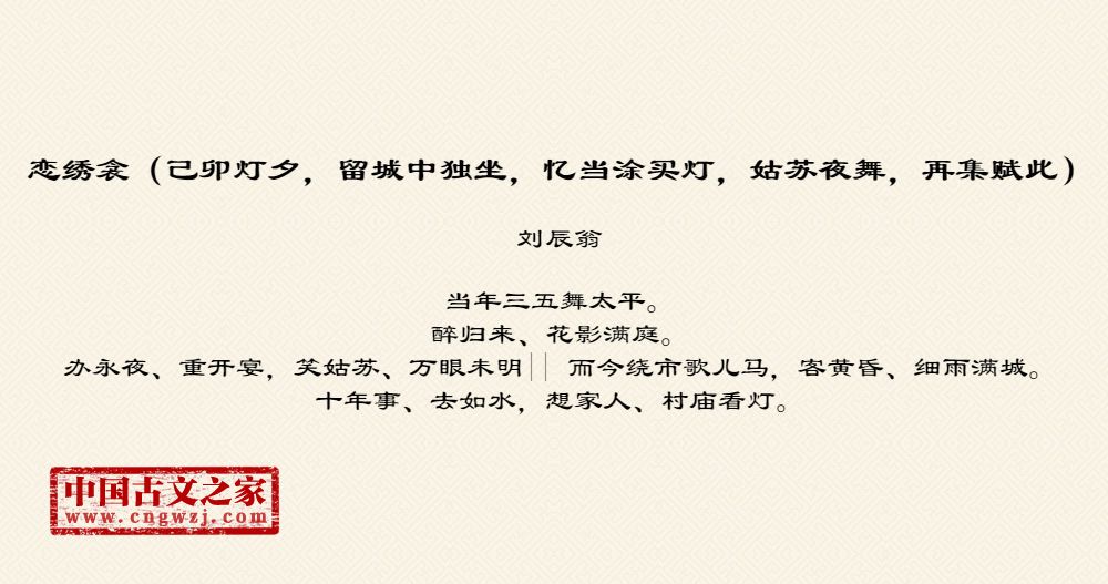 《恋绣衾(己卯灯夕,留城中独坐,忆当涂买灯,姑苏夜舞,再集赋此)》的原文打印版(刘辰翁)