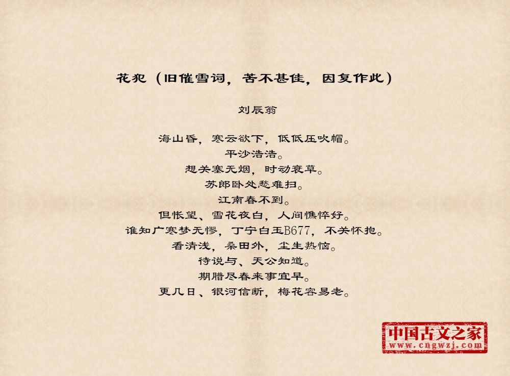 《花犯(旧催雪词,苦不甚佳,因复作此)》的原文打印版(刘辰翁)