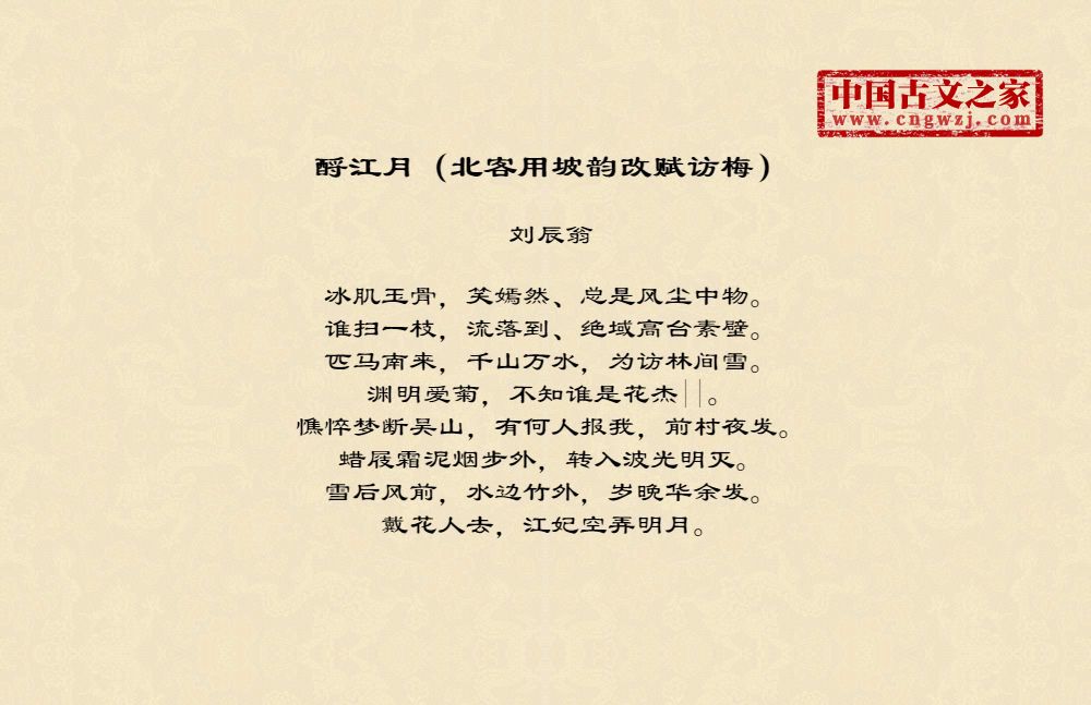 《酹江月(北客用坡韵改赋访梅)》的原文打印版(刘辰翁)