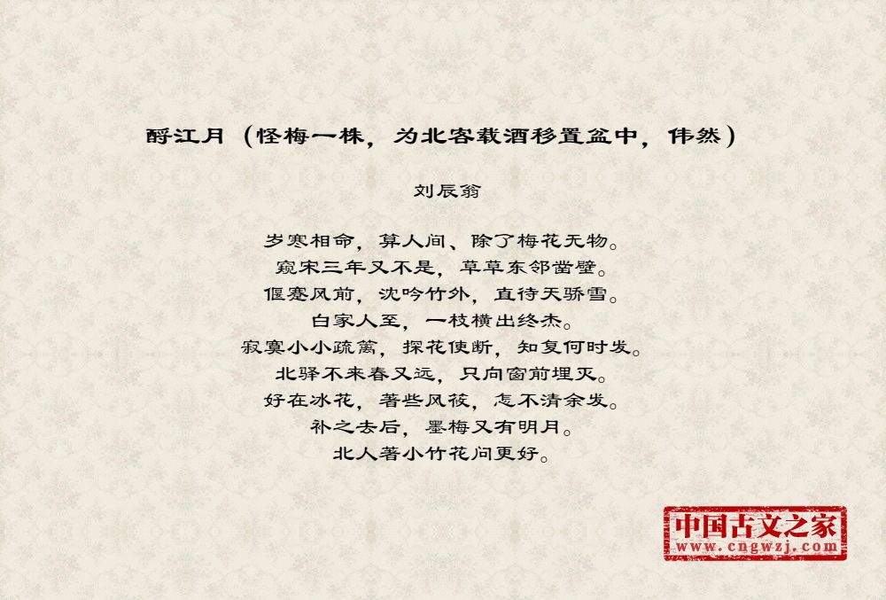 《酹江月(怪梅一株,为北客载酒移置盆中,伟然)》的原文打印版(刘辰翁)