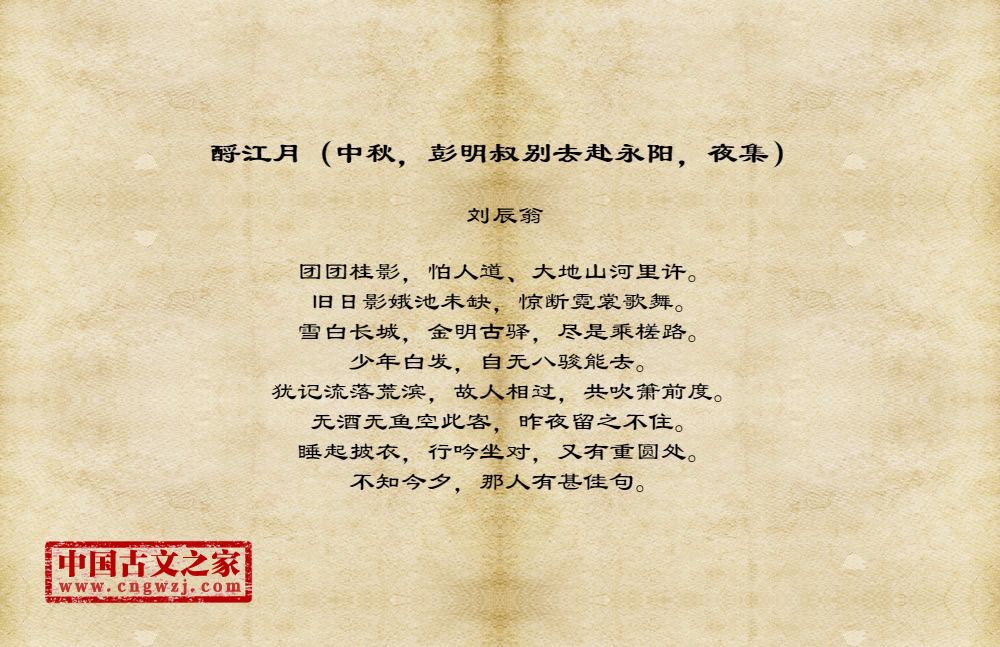 《酹江月(中秋,彭明叔别去赴永阳,夜集)》由刘辰翁创作