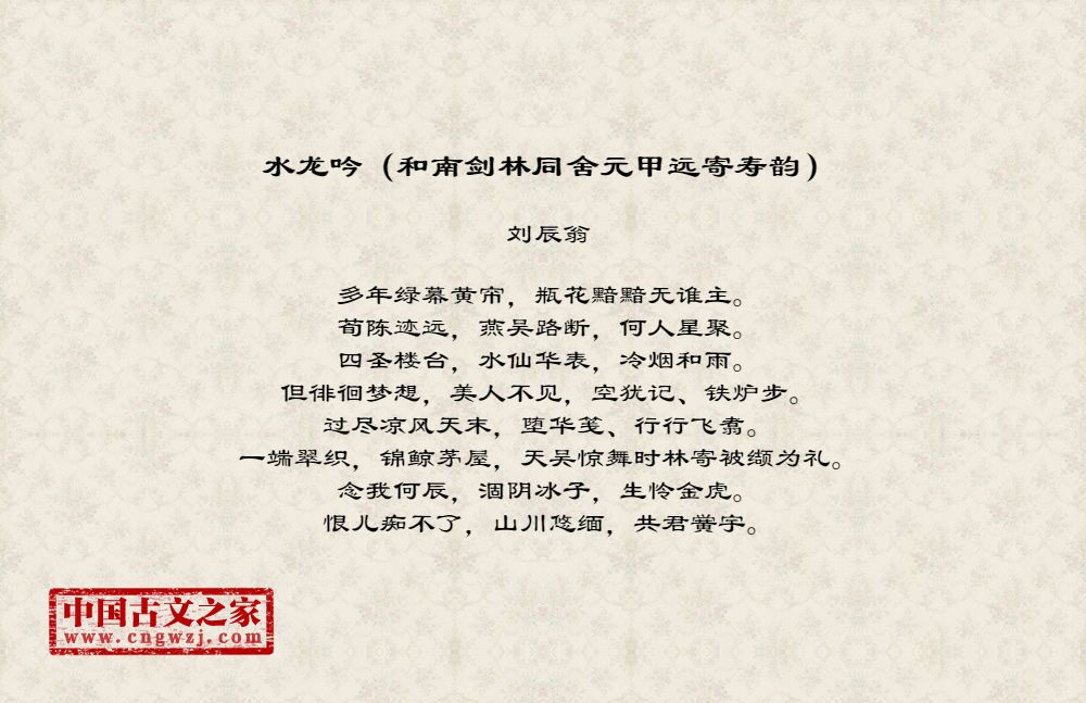 《水龙吟(和南剑林同舍元甲远寄寿韵)》的原文打印版(刘辰翁)