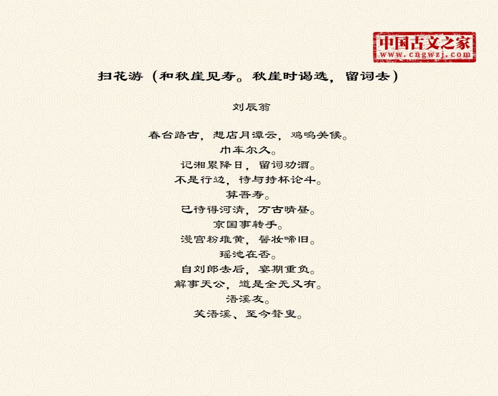 《扫花游(和秋崖见寿。秋崖时谒选,留词去)》的原文打印版(刘辰翁)