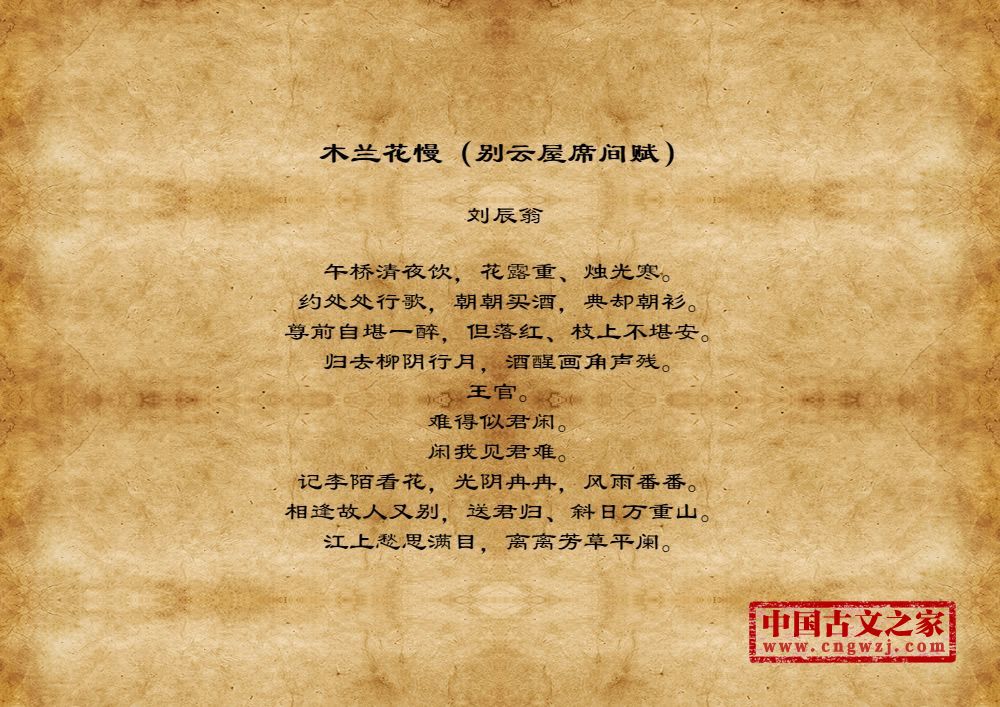 《木兰花慢(别云屋席间赋)》的原文打印版(刘辰翁)