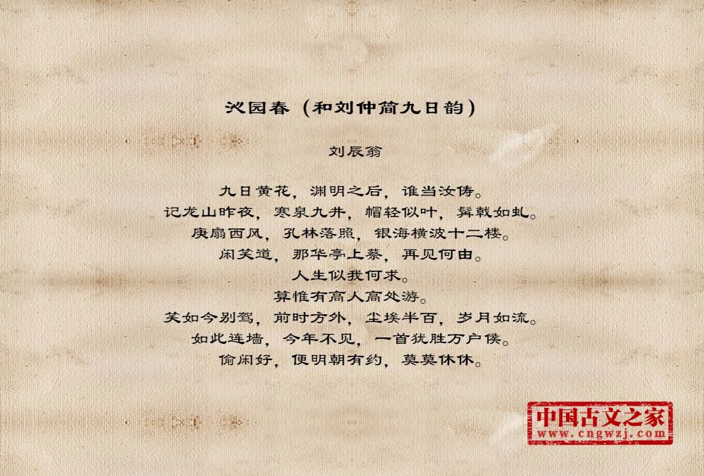 《沁园春(和刘仲简九日韵)》的原文打印版(刘辰翁)