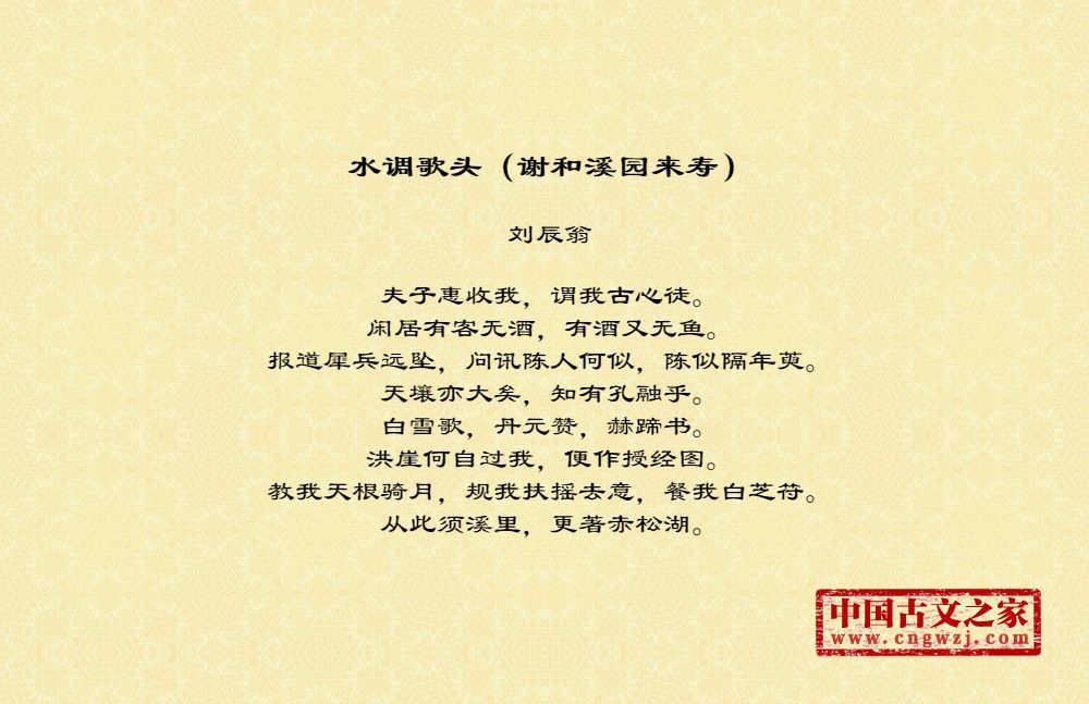 《水调歌头(谢和溪园来寿)》的原文打印版(刘辰翁)