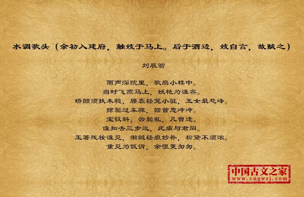 《水调歌头(余初入建府,触妓于马上。后于酒边,妓自言,故赋之)》的原文打印版(刘辰翁)