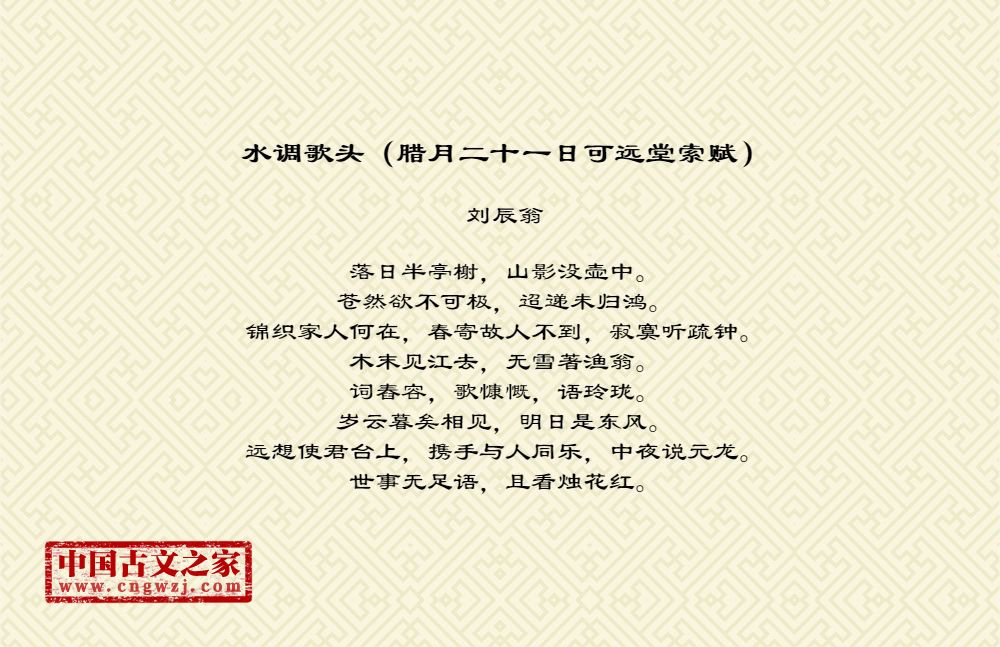《水调歌头(腊月二十一日可远堂索赋)》由刘辰翁创作
