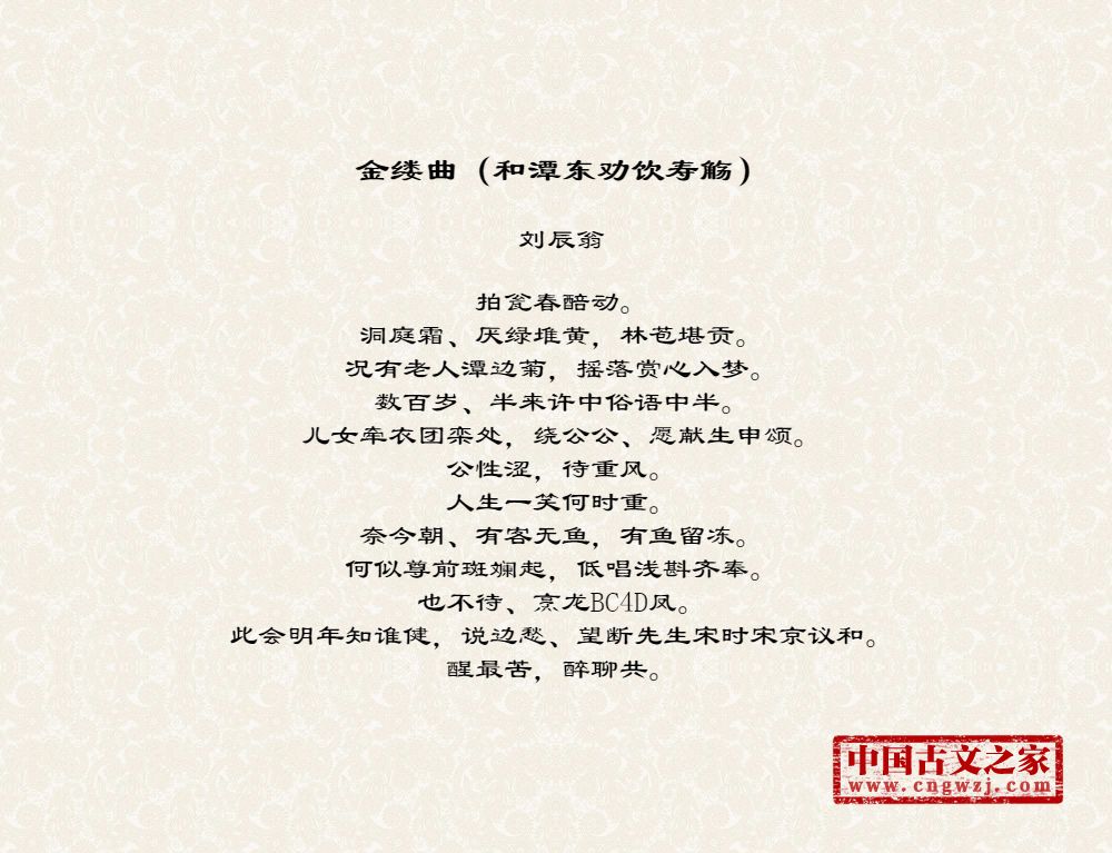 《金缕曲(和潭东劝饮寿觞)》的原文打印版(刘辰翁)