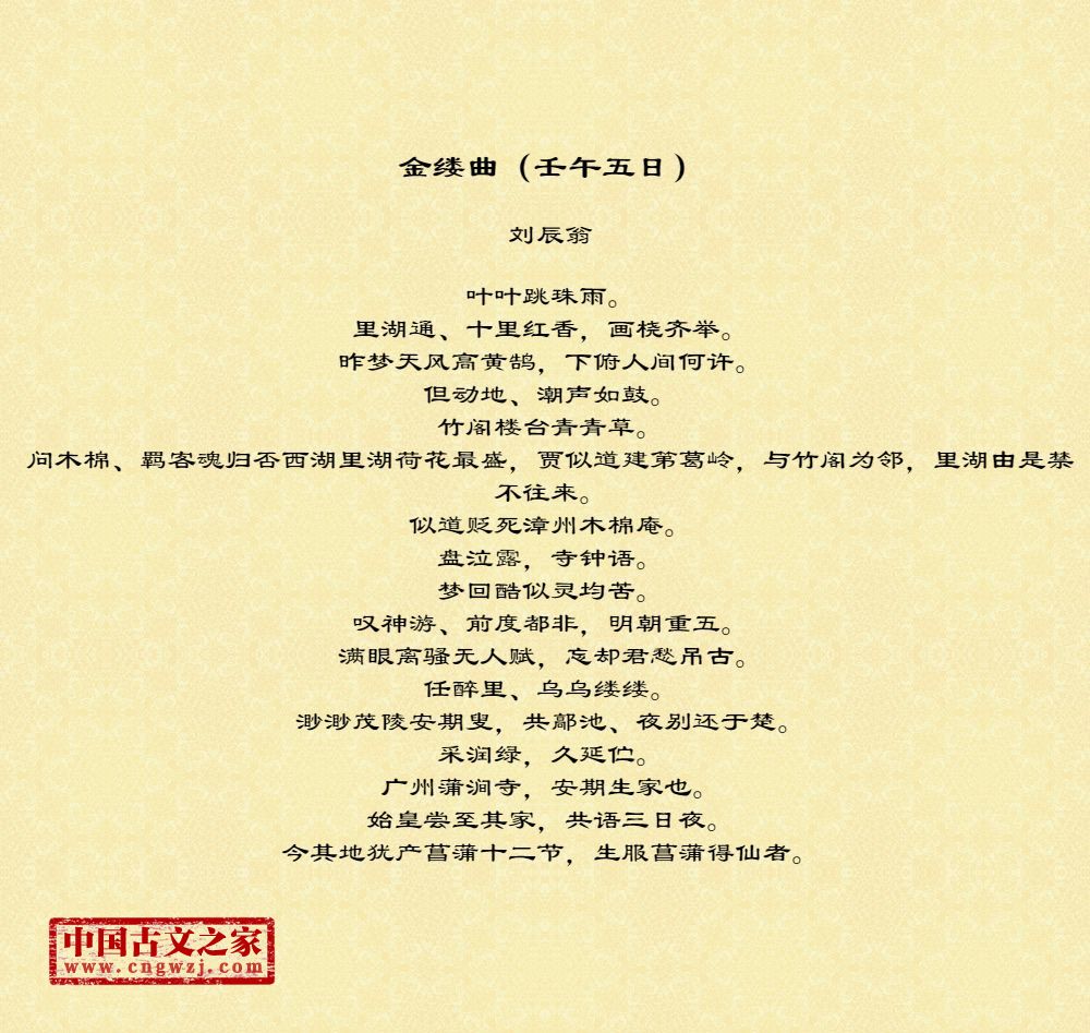 问木棉、羁客魂归否西湖里湖荷花最盛,贾似道建第葛岭,与竹阁为邻,里湖由是禁不往来。