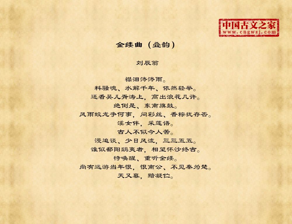 刘辰翁(1233.2.4—1297.2.12),字会孟,别号须溪。庐陵灌溪(今江西省吉安市吉安县梅塘乡小灌村)人。南宋末年著名的爱国诗人。景定三年(1