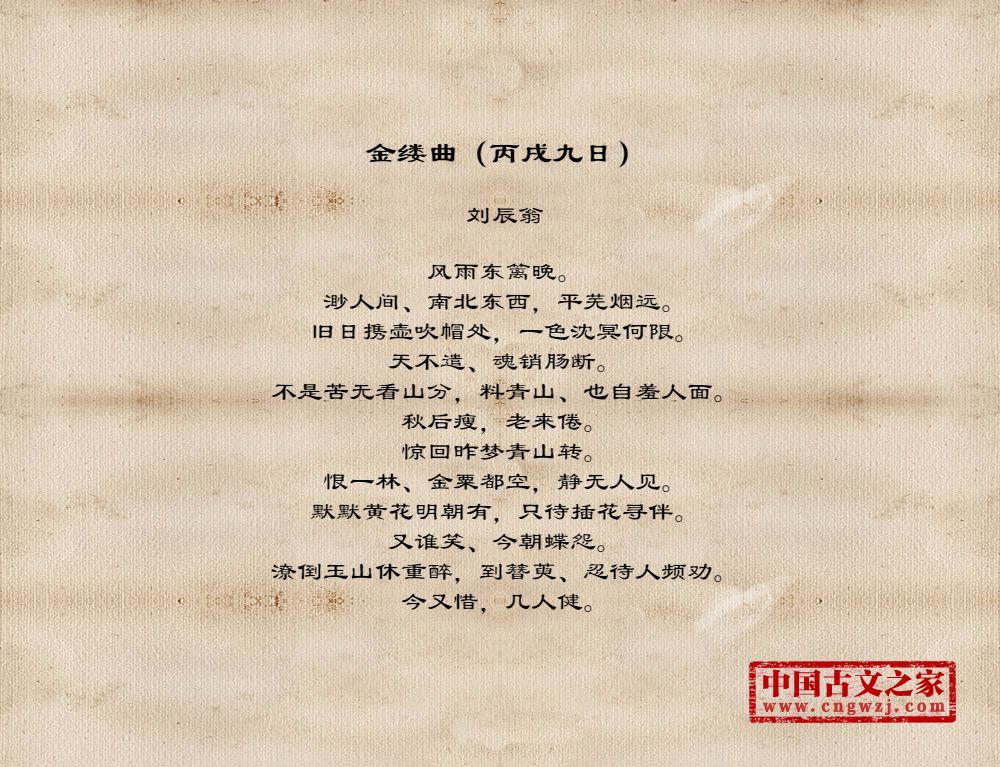 刘辰翁(1233.2.4—1297.2.12),字会孟,别号须溪。庐陵灌溪(今江西省吉安市吉安县梅塘乡小灌村)人。南宋末年著名的爱国诗人。景定三年(1