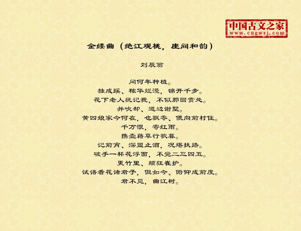《金缕曲(绝江观桃,座间和韵)》的原文打印版(刘辰翁)