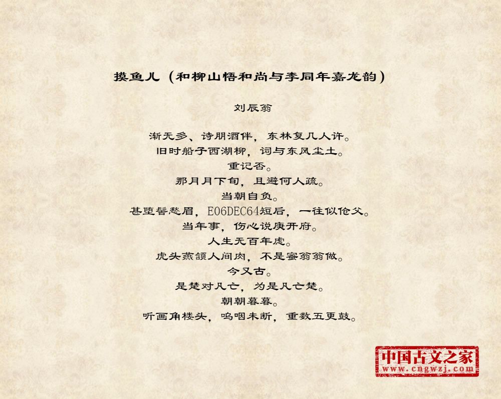 《摸鱼儿(和柳山悟和尚与李同年嘉龙韵)》的原文打印版(刘辰翁)
