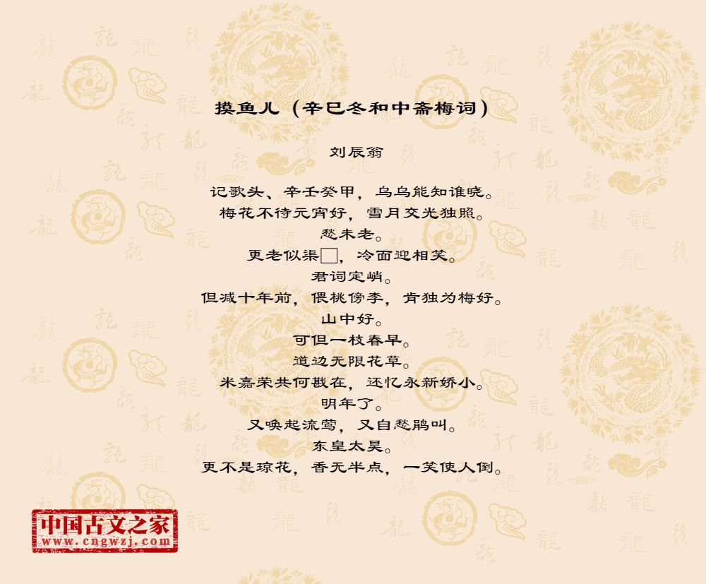 《摸鱼儿(辛巳冬和中斋梅词)》由刘辰翁创作