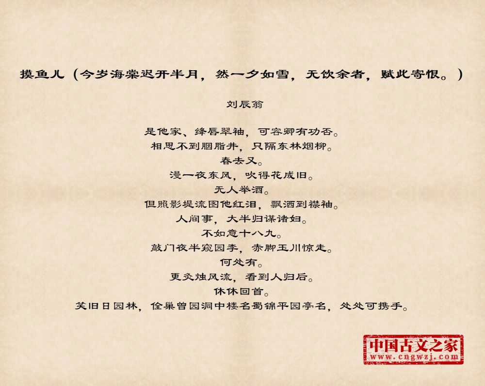 摸鱼儿(今岁海棠迟开半月,然一夕如雪,无饮余者,赋此寄恨。)图片