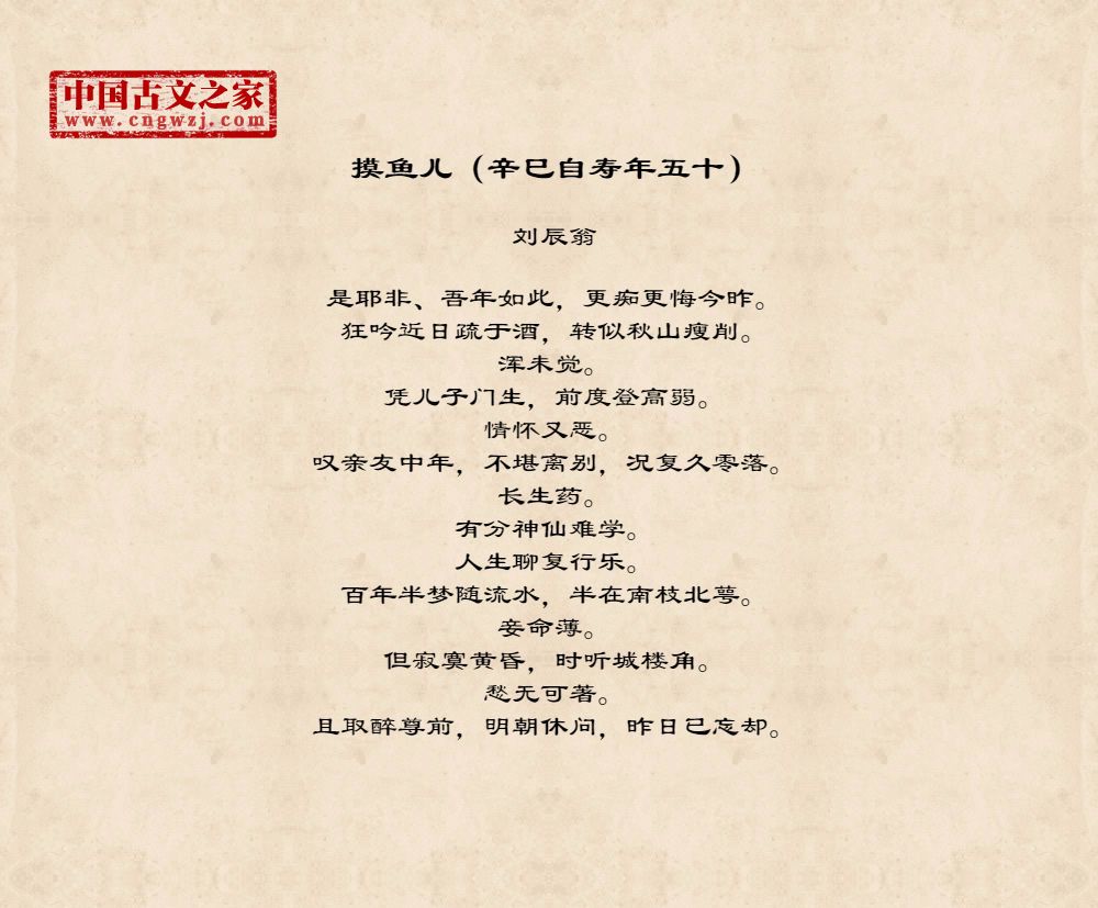 摸鱼儿(辛巳自寿年五十)