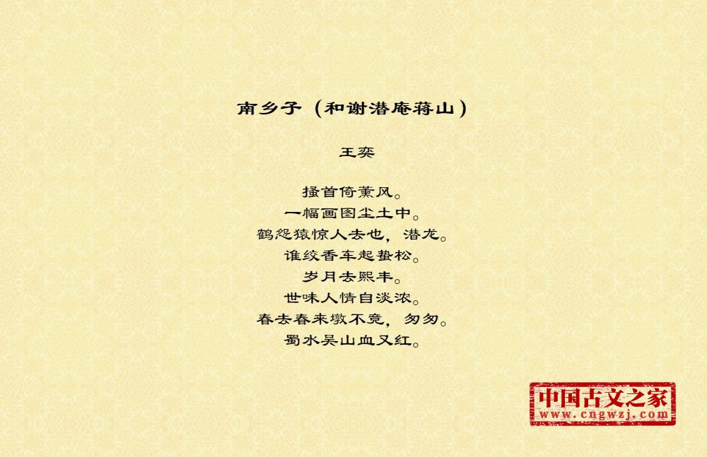 《南乡子(和谢潜庵蒋山)》由王奕创作