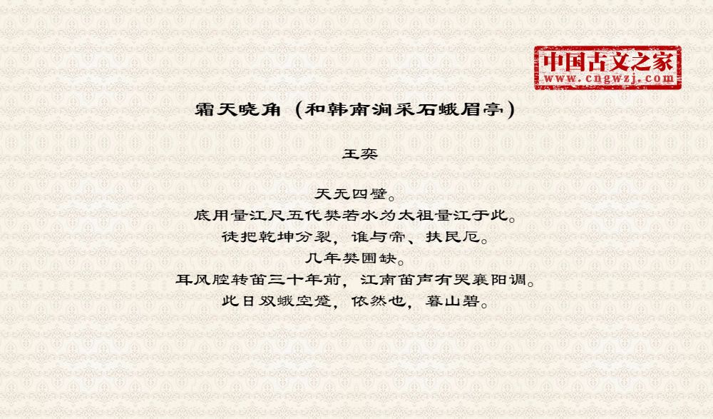 《霜天晓角(和韩南涧采石蛾眉亭)》由王奕创作