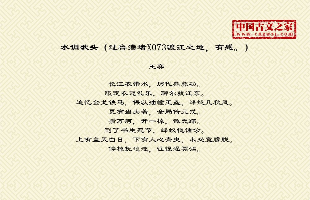 《水调歌头(过鲁港堵X073渡江之地,有感。)》的原文打印版(王奕)