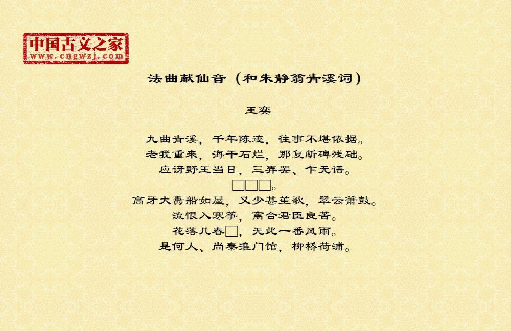 《法曲献仙音(和朱静翁青溪词)》的原文打印版(王奕)