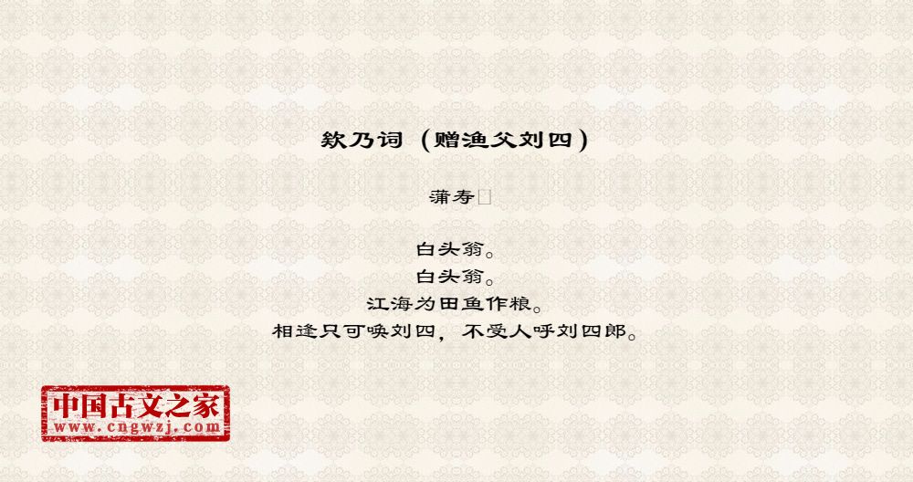 《欸乃词(赠渔父刘四)》由蒲寿创作