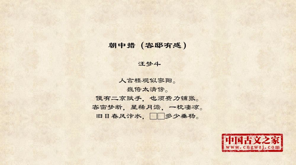 《朝中措(客邸有感)》的原文打印版(汪梦斗)