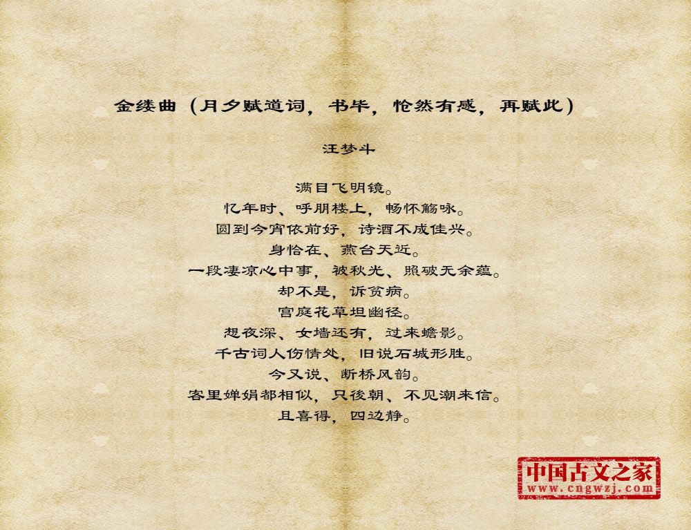 《金缕曲(月夕赋道词,书毕,怆然有感,再赋此)》的原文打印版(汪梦斗)