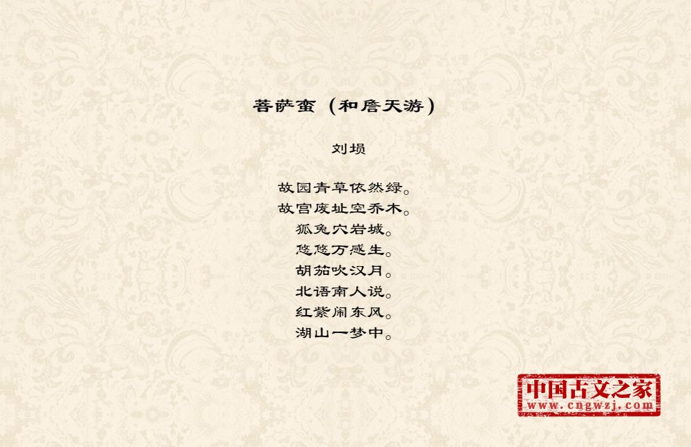 《菩萨蛮(和詹天游)》的原文打印版(刘埙)