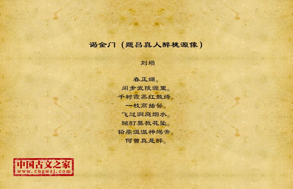 《谒金门(题吕真人醉桃源像)》的原文打印版(刘埙)