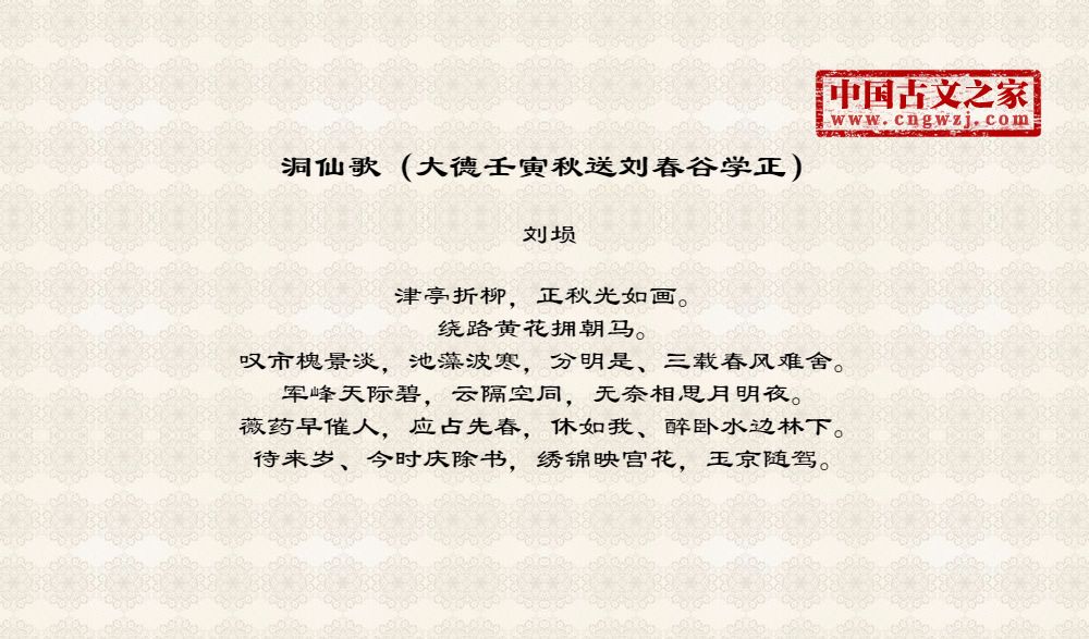 《洞仙歌(大德壬寅秋送刘春谷学正)》的原文打印版(刘埙)