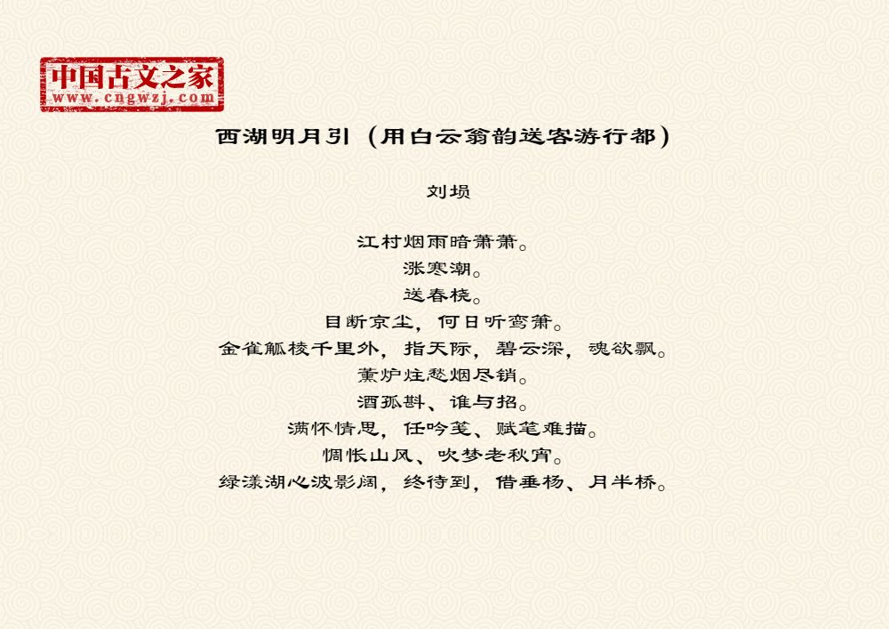 《西湖明月引(用白云翁韵送客游行都)》的原文打印版(刘埙)