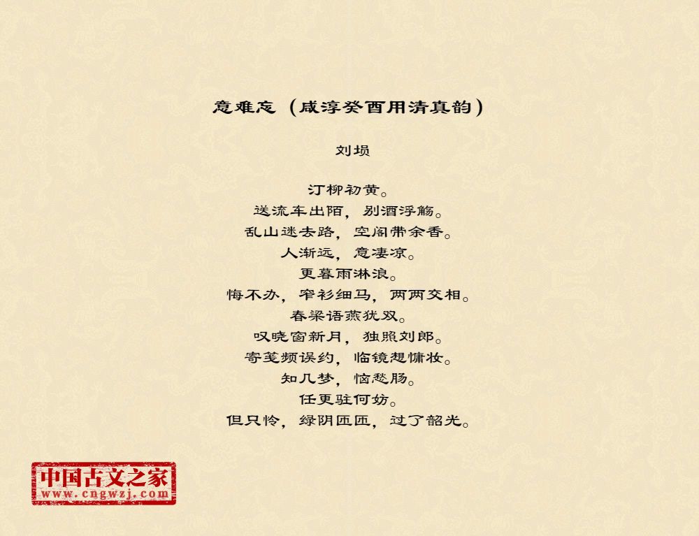 《意难忘(咸淳癸酉用清真韵)》的原文打印版(刘埙)