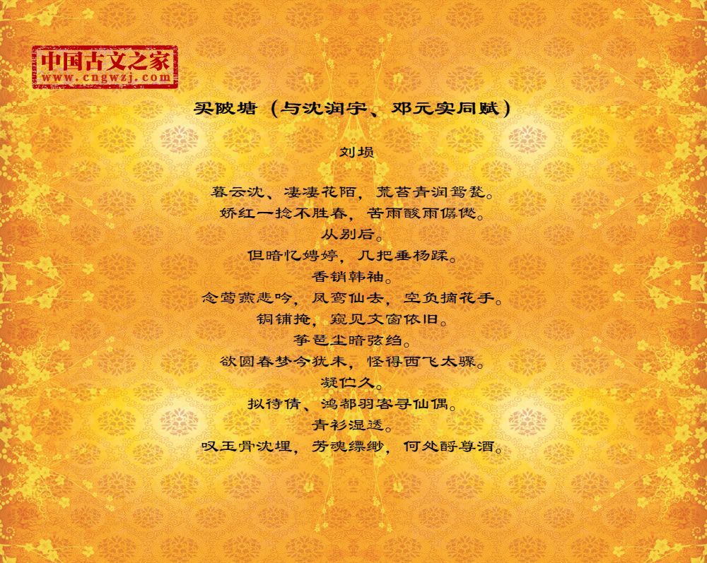 《买陂塘(与沈润宇、邓元实同赋)》的原文打印版(刘埙)