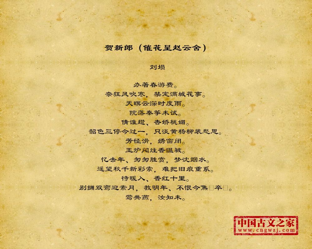 办著春游费。奈狂风吹寒,禁定满城花事。天暝云深时度雨。院落秦筝未试。倩谁趱、杏娇桃媚。韶色三停今过一,只淡黄杨柳装愁思。芳径滑,绣窗闭。玉炉闷炷香温被。忆去年、匆匆胜赏,梦沈烟水。遥望秋千新彩索,难把旧痕重系。待暖入、香红十里。别拥双鸾迎素月,教明年、不恨今焦卒。莺共燕,汝知未。