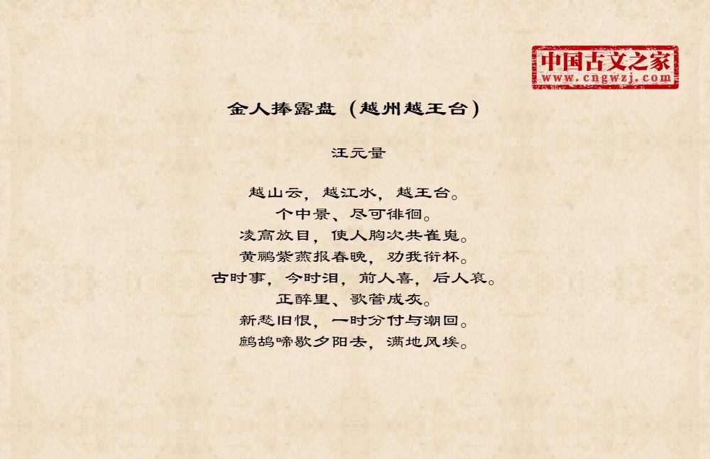 《金人捧露盘(越州越王台)》的原文打印版(汪元量)