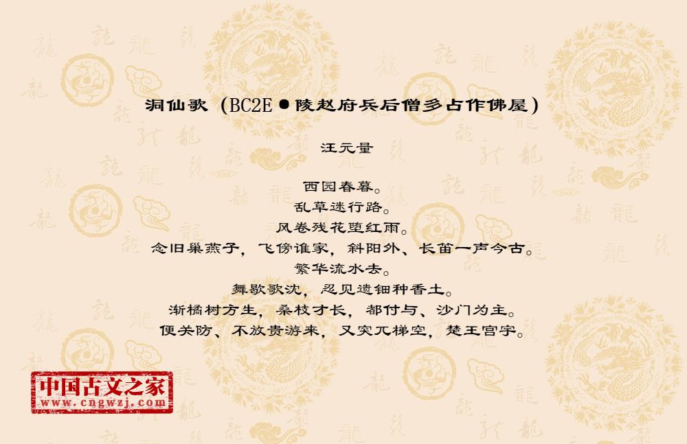 洞仙歌(BC2E·陵赵府兵后僧多占作佛屋)