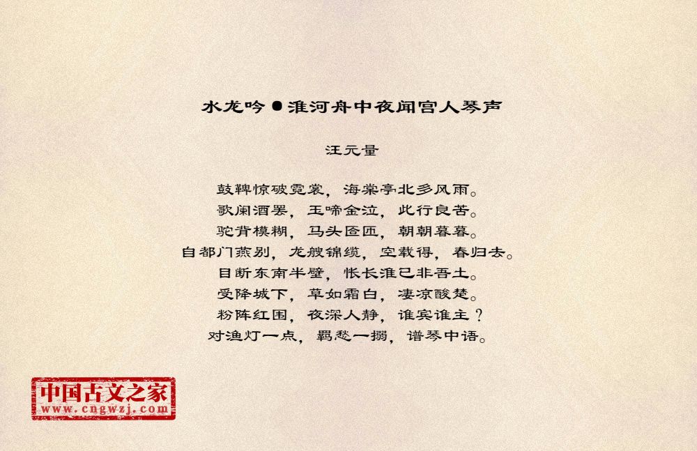 《水龙吟·淮河舟中夜闻宫人琴声》的原文打印版(汪元量)
