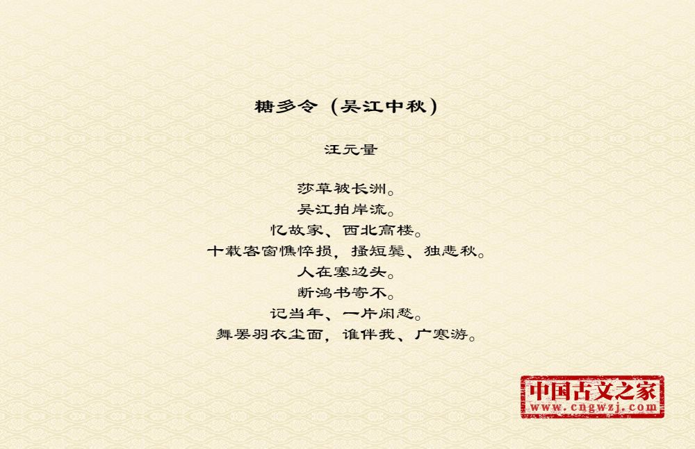 《糖多令(吴江中秋)》的原文打印版(汪元量)