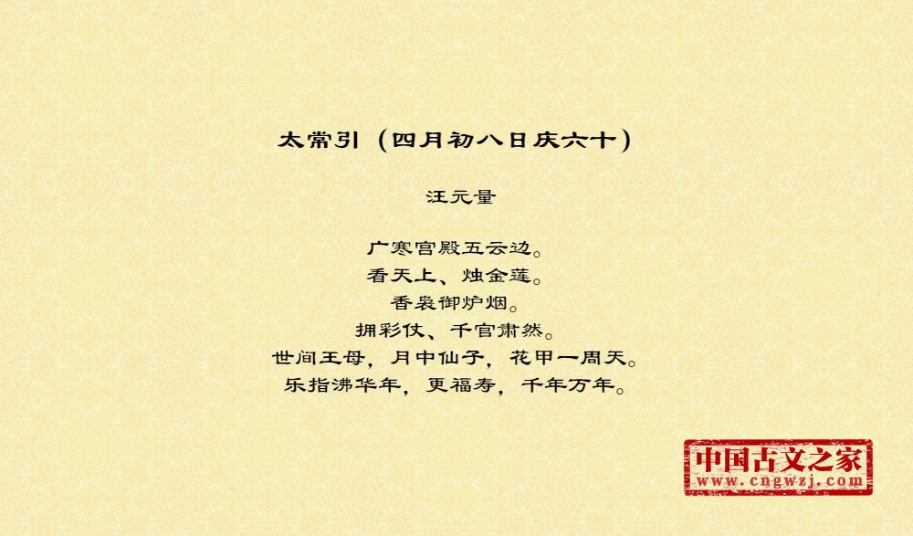 《太常引(四月初八日庆六十)》的原文打印版(汪元量)