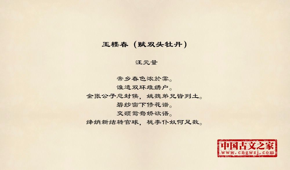 《玉楼春(赋双头牡丹)》的原文打印版(汪元量)