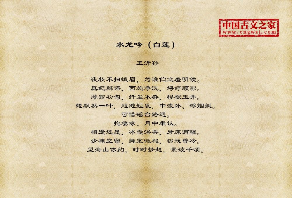 王沂孙,字圣与,号碧山、中仙、玉笥山人。会稽(今浙江绍兴)人,年辈大约与张炎相仿,入元后曾任庆元路学正。有《花外集》,又名《碧山乐府》。