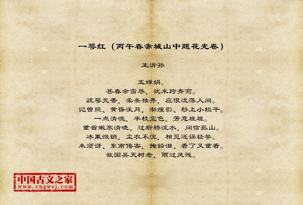《一萼红(丙午春赤城山中题花光卷)》由王沂孙创作
