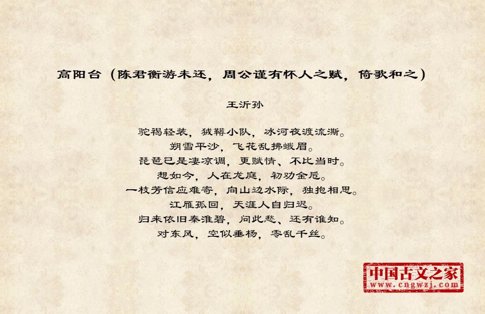 高阳台(陈君衡游未还,周公谨有怀人之赋,倚歌和之)图片