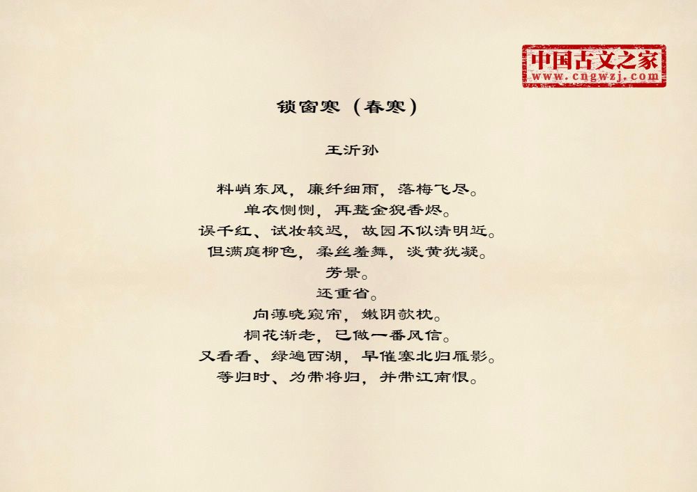 料峭东风,廉纤细雨,落梅飞尽。单衣恻恻,再整金猊香烬。误千红、试妆较迟,故园不似清明近。但满庭柳色,柔丝羞舞,淡黄犹凝。芳景。还重省。向薄晓窥帘,嫩阴欹枕。桐花渐老,已做一番风信。又看看、绿遍西湖,早催塞北归雁影。等归时、为带将归,并带江南恨。